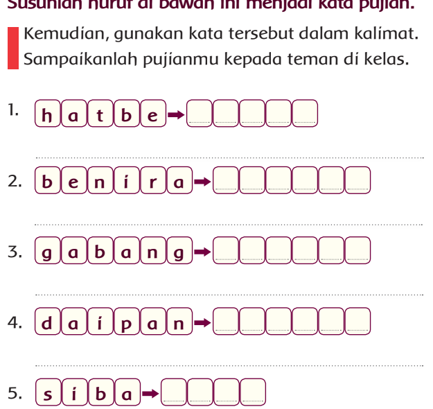 Yaaa betul kemarin kita sudah belajar mengenal tentang pembelajaran 1 dan 2 tentang membuat kalimat pujian